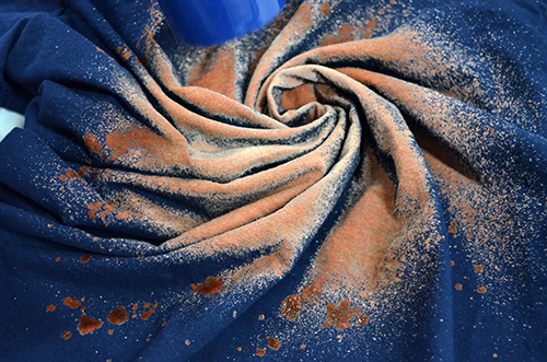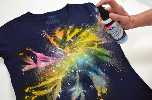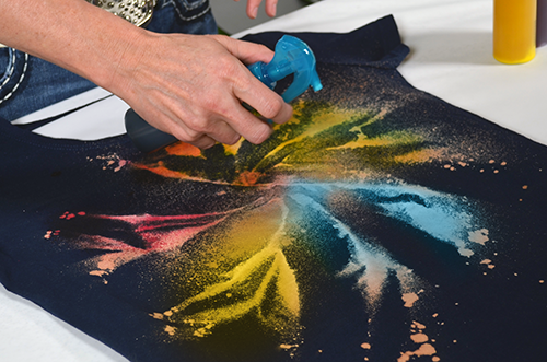 Lay shirt out flat on covered work surface. Spray lightly with Snow Fabric Spray Paint to create “stars.”