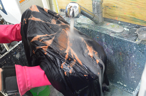 Note: Washing out the sizing will better allow the bleach to penetrate shirt fabric for a more intense design.