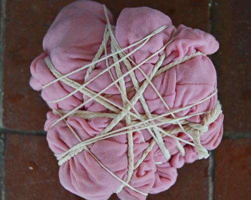Crumple the shirt and tie it with 1mm twine to keep it in position. Now you are ready to color the shirt!