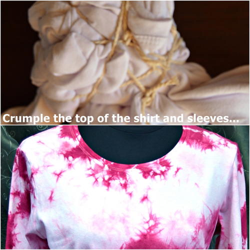 Crumple the shirt from breast height upward, as well as the top of the sleeves and tie it with a few strings to keep it in place.