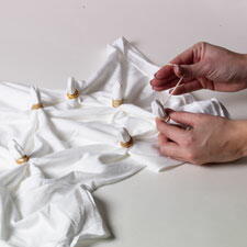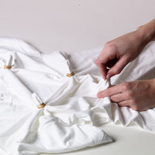 Spiral tie dye may be a classic, but it's a slightly more complicated technique. If you're new to tie dye or working with younger children, give the sunburst technique a try. Rather than one central focal point, you'll create several little bursts of color!
