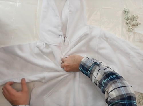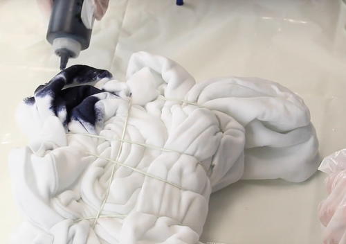 Dunk your rubber-banded hoodie in water to prepare it for dyeing. This will allow the dye to pull into your fabric better.