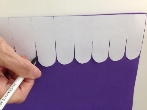 Next, use the tip of a wood skewer to outline the petals on the foam sheets. I used the entire length of the sheets (18") and outlined three rows to cut out.