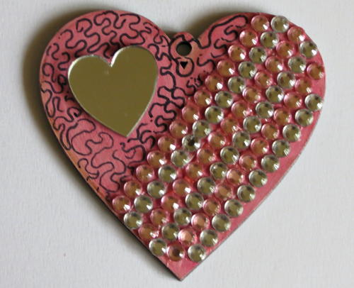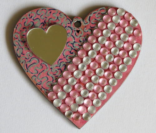 Use the Super Glue to affix the mirror heart to the wooden heart and allow to dry.