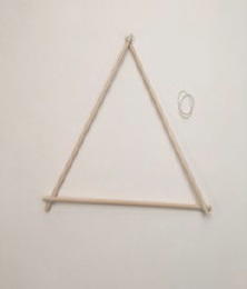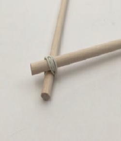 Bind two ends of dowels together with rubber band. Bind other two dowels together to form triangle.