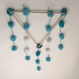 Create a pom pom project without actually making the pom poms! Use pom pom yarn to create an effortless and beautiful beach wall hanging. This tutorial features a kite-like wall decoration perfect for the summer home. Hang it near a window so it gets plenty of light and really pops! Use shades of blue pom pom yarn to create a lovely and nautical effect. A pale starfish is the perfect finishing touch. This is a fantastic home decor project for beginners, and it works up so much more quickly than if you were hand making all the pom poms yourself.