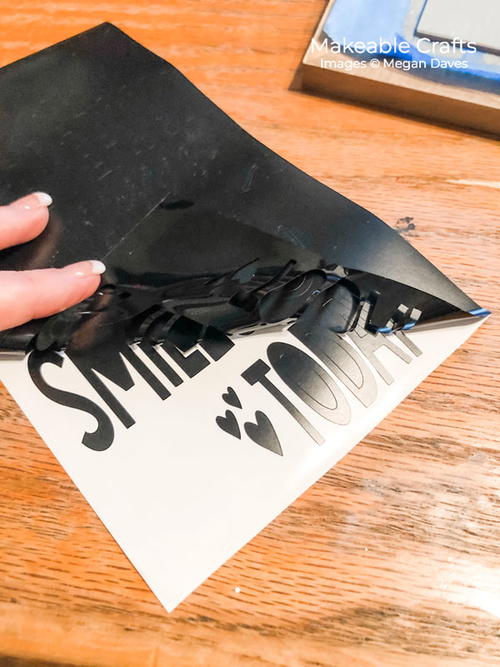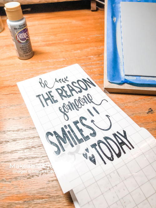 Then, it's time to add transfer tape on top of my weeded vinyl and then apply it to the sign.