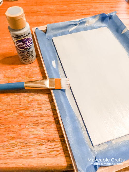 Then I painted a base coat of gray using Americana Slate Gray paint.