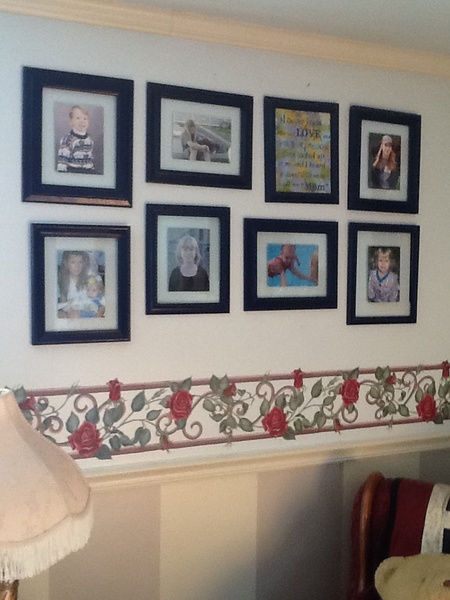 - Place photos between 2 pieces of glass as shown. Use hot glue around edges on the back to keep the glass in place, prongs will show.. Frame the collage and arrange on the wall.