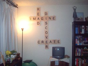 This is a perfect idea for disguising a boring white wall! I think I would hang the tiles in a reading nook or sunroom. When all my friends come over for a game night they will surely be impressed with my crafty enthusiasm towards board games. For a funny twist, I may spell some "big points" words like SEQUOIA or words with a Q but not a U (aren't those always the tricky letters to get rid of in the game!). I can't wait to get this project finished!