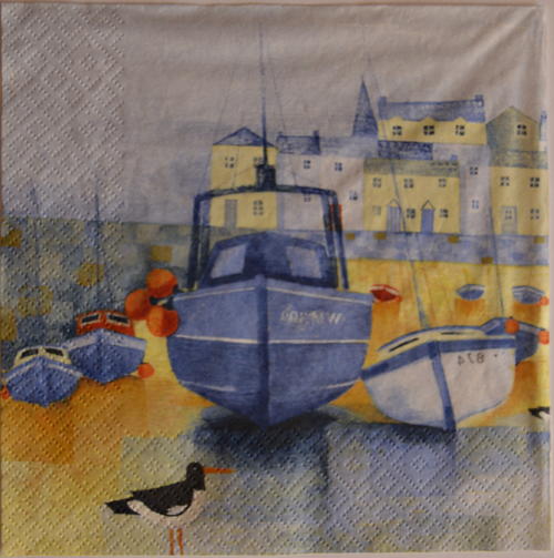 Paint a thin layer of Mod Podge over the whole inner bottom of the canvas. The Mod Podge will protect the napkin image and give the product a smoother finish.