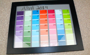This wipe away paint chip "calendar" could be used for so many purposes depending on how the paint chips are arranged in the picture frame. I can not believe how much money I would have saved on those white boards if I would have run across this post first.