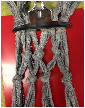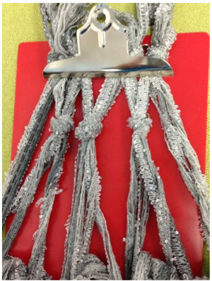 - Place the four knots in the clipboard in preparation for the next row of knots.