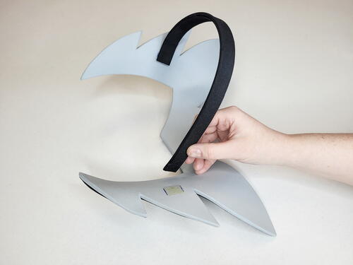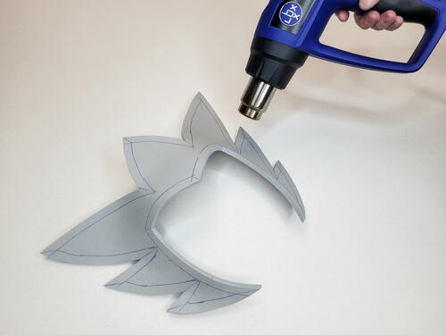 Heat the thin EVA foam strap with the heat gun. When the foam strip is hot, you can shape it to be rounded and fit well on the back of your head. This piece will be the strap that keeps the headpiece snug on your head.