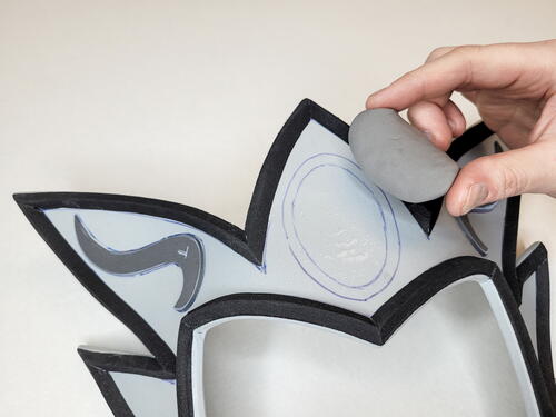 Form a flat oval shape with a bit of foam clay. If the foam clay is too dry, mix some water into it. Using your fingers, apply a little bit of water on the armor where you want to place the gem. This will make the foam clay stick better to the foam.