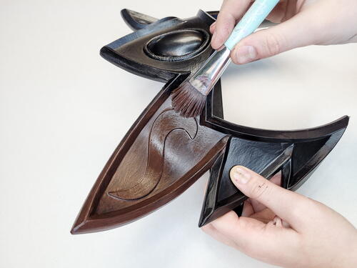 Optional: Take your paint job to the next level by creating even more shadows with black oil paint. Then, if you want, finish off by protecting your project with a layer of varnish. For this project, I recommend coating the whole piece with satin acrylic varnish and applying gloss acrylic varnish on the gem.
