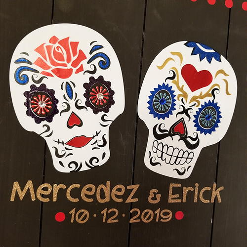 From the Designer: "Create a wedding keepsake that is unique as you are! This alternative to a wedding guest book is perfect for a Day of the Dead themed event. The colorful sugar skulls create a dramatic and beautiful focal point while the chalk paint background provides plenty of space for signatures and well wishes from your wedding guests. You can create this project in just a few hours using svg files for your electronic die cutting machine and a combination of paint, specialty vinyl and foiled paper."
