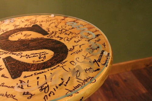 Lightly seal surface of table top with the Crystal Clear Enamel Spray Sealer to help preserve the signatures. Allow to dry.