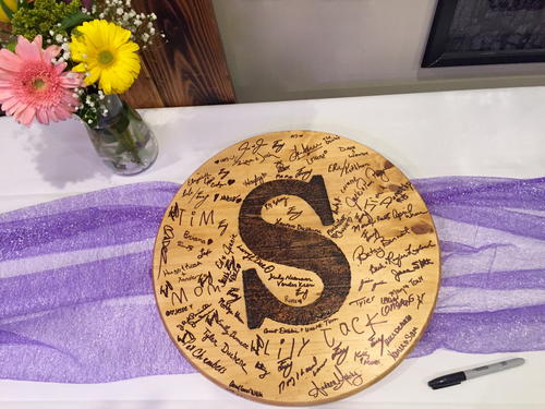 At the wedding allow guests to sign the wood piece with permanent marker.
