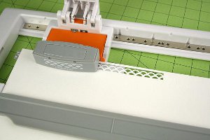 - Using the AdvantEdge Border Punch System along with the adapter and the Lacy Doubles Interchangeable Border Punch Cartridge, punch down the length of a 12” piece of cream cardstock. Use your paper trimmer to cut the punched edge from the cardstock leaving a ¼” wide cardstock strip attached.