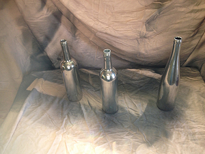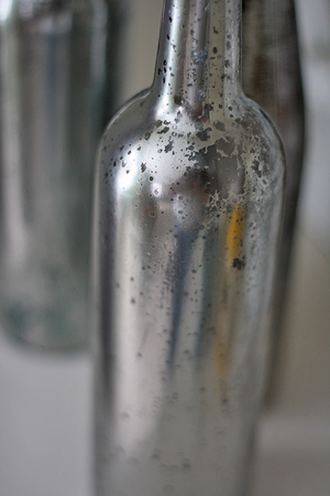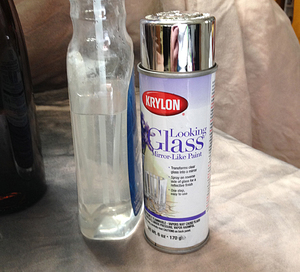- Be sure that the bottles are completely clean and dry. Spray a thin coat of Looking Glass paint onto the bottles and let dry 20 minutes.