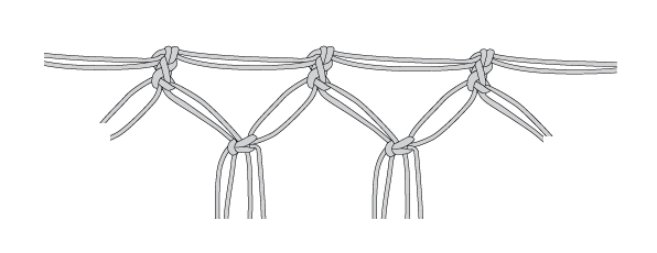 - Repeat step 8, until you reach the rim of your bottle; you will be making a diamond pattern down the surface of the bottle. Your last row of knots should sit at, or just above the cut rim of the bottle.