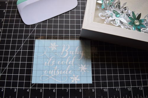 To finish shadowbox, follow cutting machine instructions to cut Baby It’s Cold Outside SVG file from white vinyl.