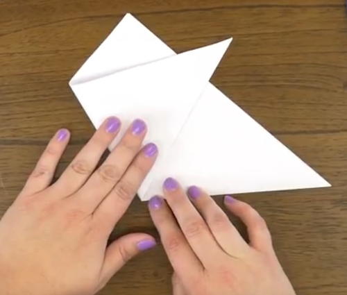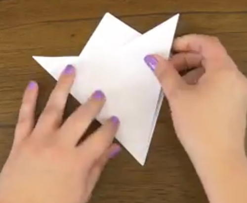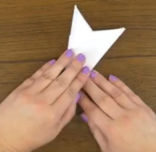 Flip the paper over, and repeat this step on the other side, lining up the folds as well as possible. The goal is a symmetrical snowflake!