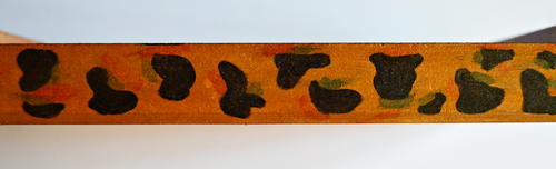 Use the pencil to draw leopard spots around the sides of the tray. Color all the spots with the black Giotto pen and allow to dry.