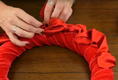 Repeat this layering and ruching process until the wreath looks full with texture.