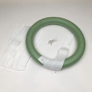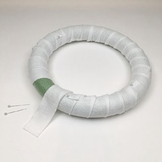 Pin end of one felt strip to wreath. Wind around wreath.