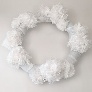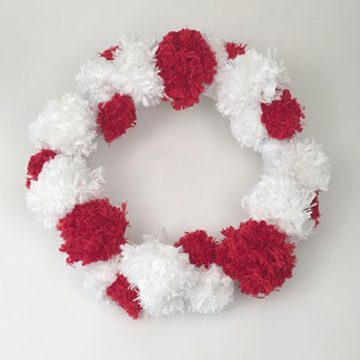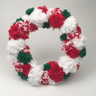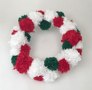 From Red Heart: "This fluffy wreath is an easy way to craft for Christmas! Make one for your home to spread holiday happiness."